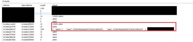 - 검색을 실행하면 메모리 내 발견된 문자열 목록이 표시됨.