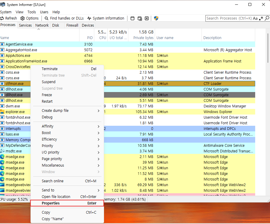 - 경량·단순 UI로 초심자 접근성이 높음. (심층 증거는 이후 Process Hacker/Procmon으로 보완)